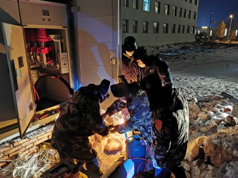 12月的東烏旗,室外氣溫已經逼近零下二十四五度,在外面待一會兒就冷的不行,更別說長時間進行露天作業了。由于前幾日的降雪,氣溫驟降,土壤深度凍結,施工現場已不具備機具施工條件,電建東烏分公司施工人員針對施工中遇到的困難,一致決定采取“笨辦法”,挖不動的地方先用火烤,機器進不去的地方就用人扛著電纜往里送,想方設法確保工程按期完成。